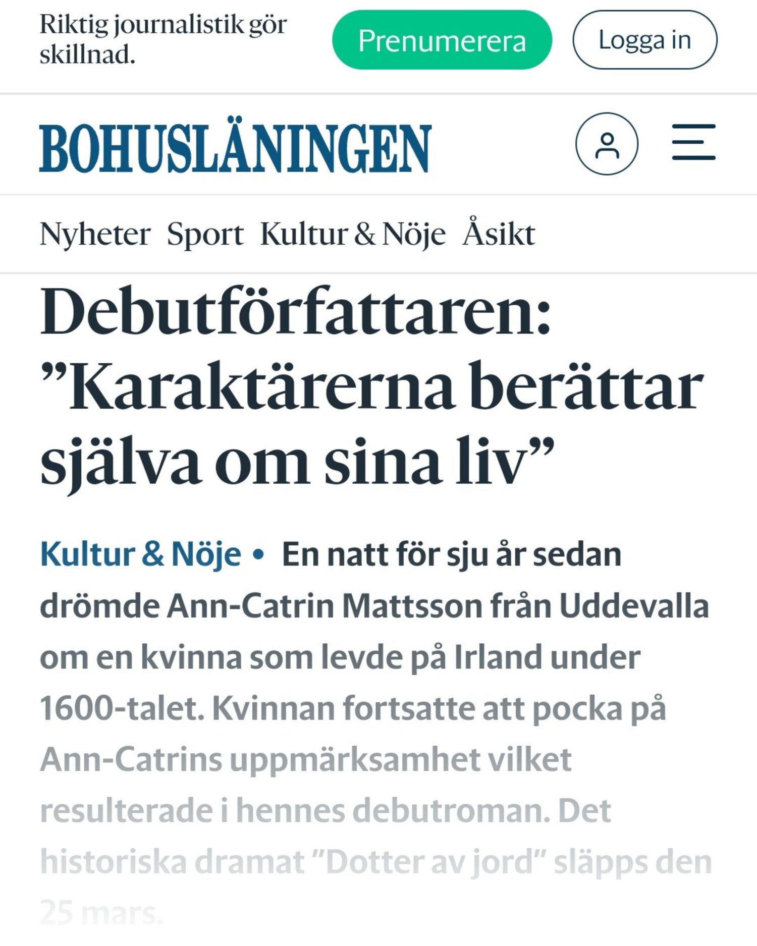 Intervju i Bohuslänningen - Kultur & Nöje: Debutförfattaren: ”Karaktärerna berättar själva om sina liv.”